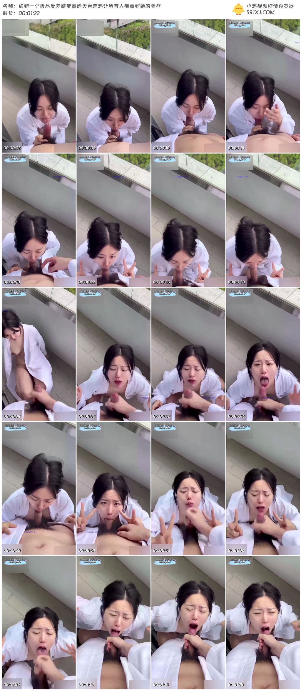 约到一个极品反差婊带着她天台吃鸡让所有人都看到她的骚样