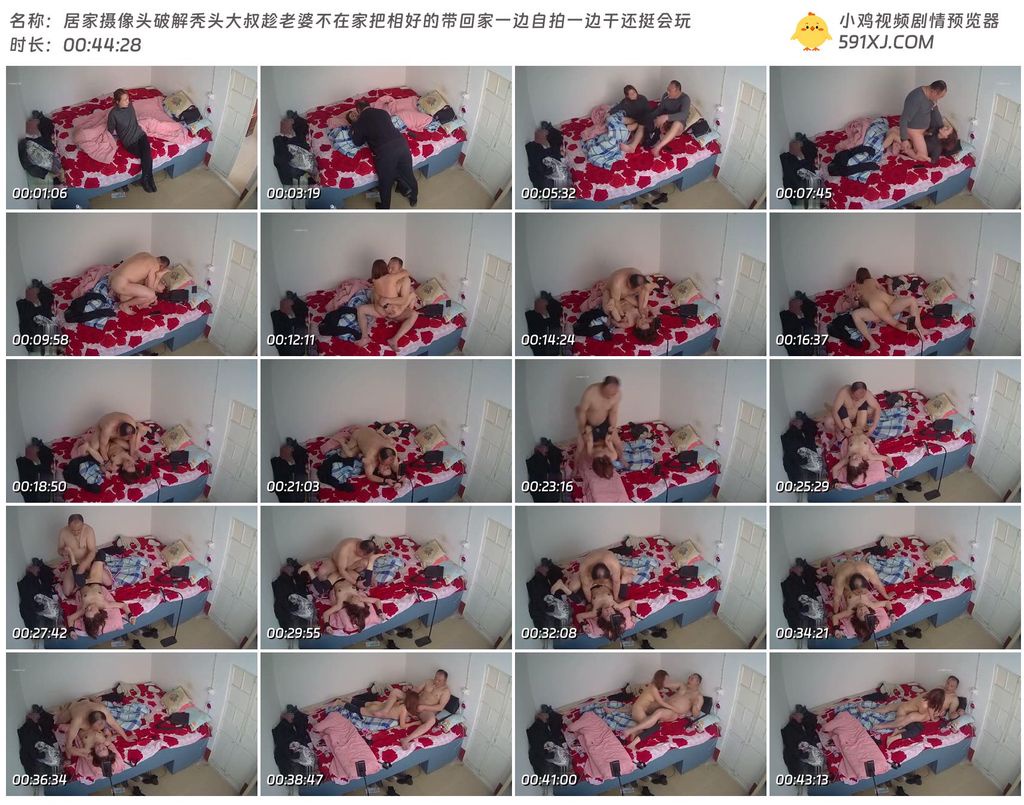 居家摄像头破解秃头大叔趁老婆不在家把相好的带回家一边自拍一边干还挺会玩